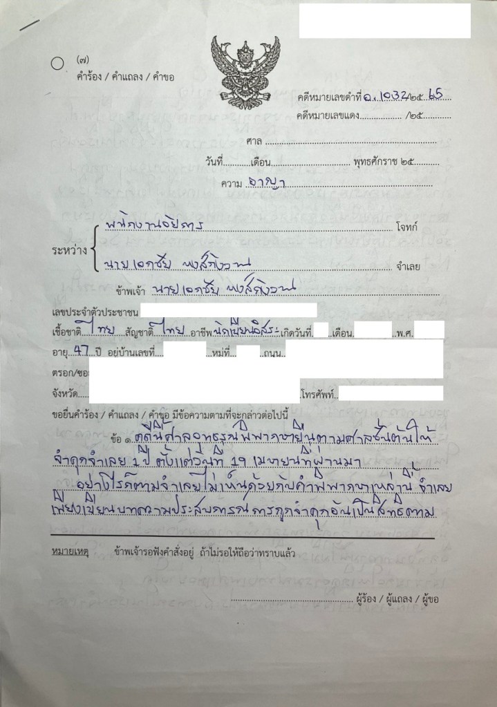 The case is now pending at the Supreme Court. In September 2022, after five months in prison and six requests for release on bail, Ekkachai was finally granted bail. The translator thanks Ida Aroonwong, Ekkachai’s current bail bondsperson, for acquiring translation rights from the defendant as well as tracking down the original draft of the never-before-seen final appeal to the Supreme Court penned in prison. Thanks are also due to iLaw’s Freedom of Expression Documentation Center for acquiring and storing copies of the full verdicts online.