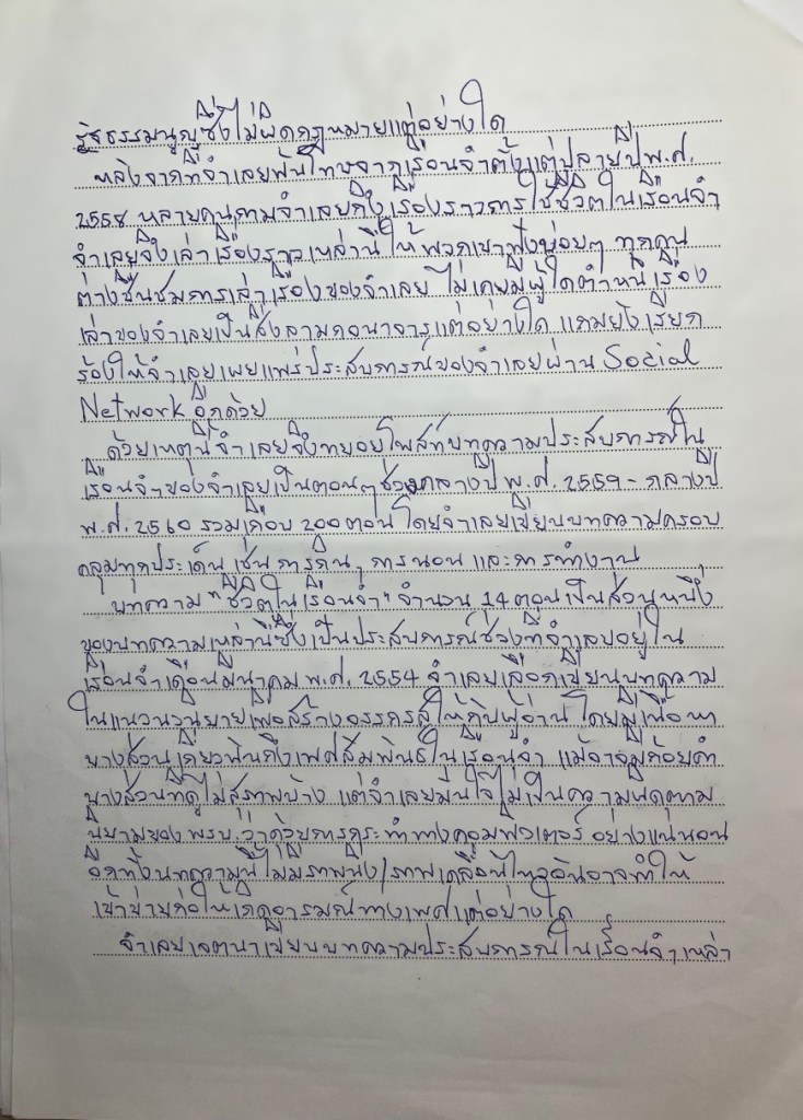 For this reason, I gradually posted articles about my experiences in prison in parts from mid-2559[2016] to mid-2560[2017], totaling almost 200 parts. What I wrote encompassed every issue, for example eating, sleeping, and working.